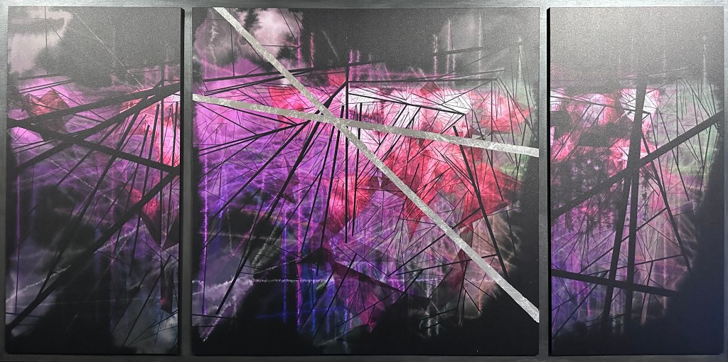 Discord and Light (luminous), photographic print, acrylic paint, silver leaf, wooden panel 1280x640mm