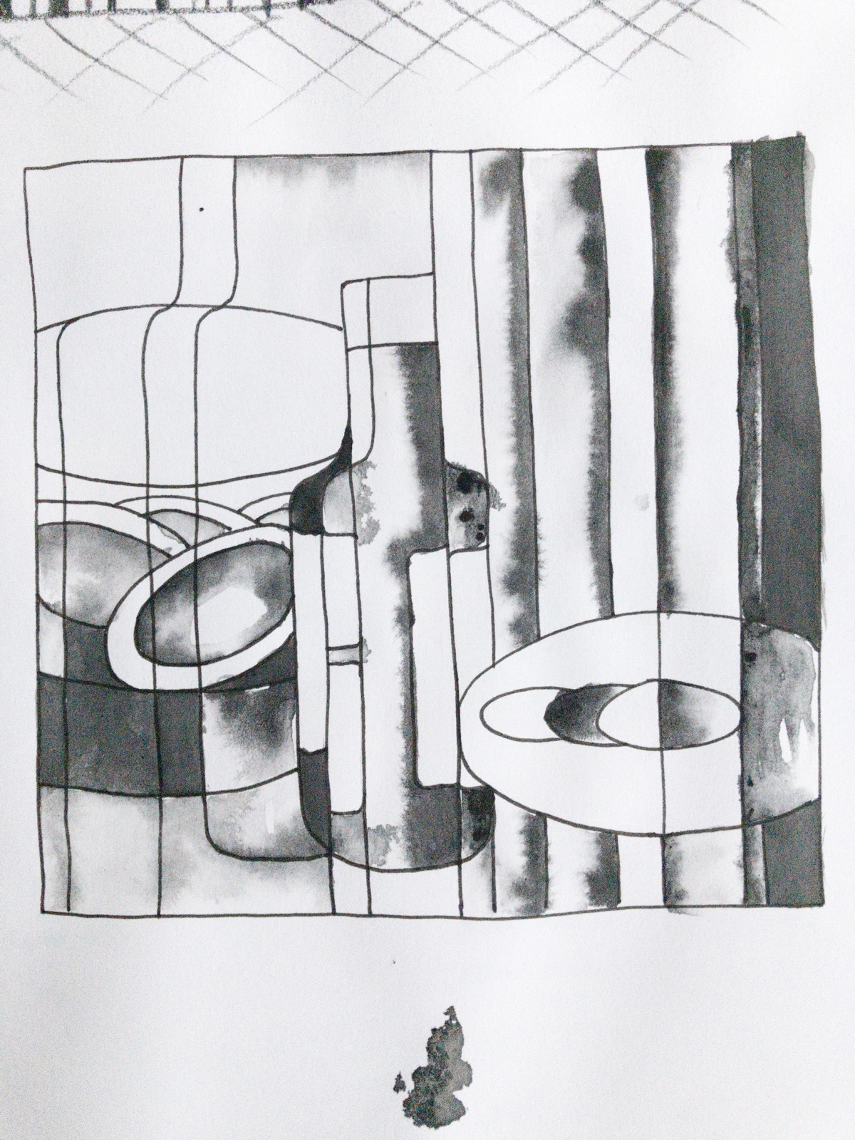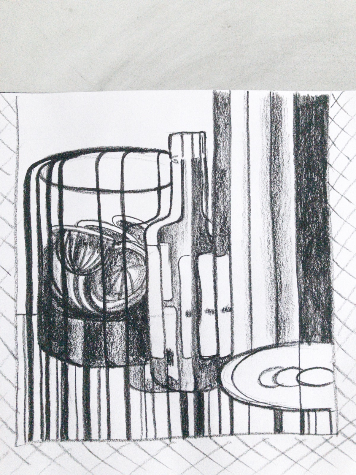 The work began with still life drawings in which I fractured the surface, at first to echo the reflections and refractions I was seeing in the glass objects, and then explicitly to think about quantum superposition.