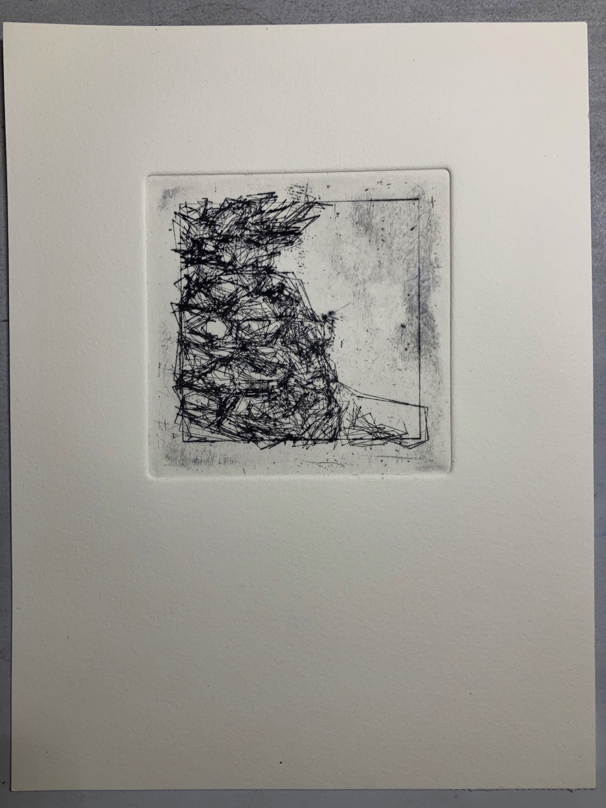 Image 11: “Quantum Fruit 2: Pineapple”, dry point print, Caligo Safewash on Somerset Satin paper, image 100mm x 100mm on paper 250mm x 190mm